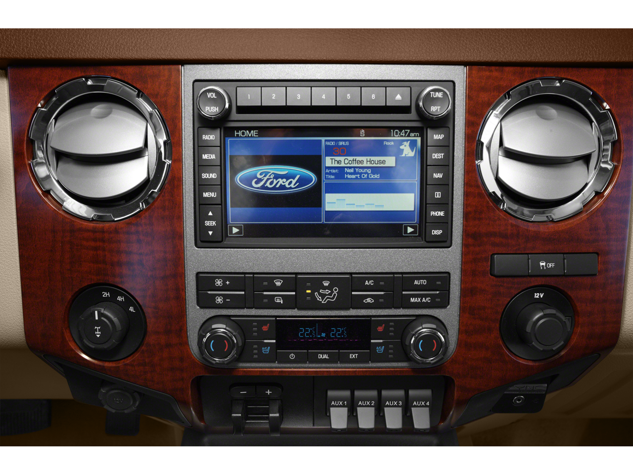 - SYNC w/MyFord Touch & SYNC Services -inc: 911 assist, USB port, AppLink, 8" LCD color touch-screen in center stack, IP mounted inverter (110v/150w) upper closable media hub w/2 USB ports, SD card reader, audio/video input jacks, 12 volt powerpoint, 5-way steering wheel control switch and 4.2" LCD productivity screen w/menus for gauge setup, trip computer, fuel economy and towing/off-road applications, SYNC Services include traffic, turn-by-turn directions, business search, send to SYNC from MapQuest, news, sports, weather and horoscopes, Note: SYNC Services receive a complimentary 1 year prepaid subscription