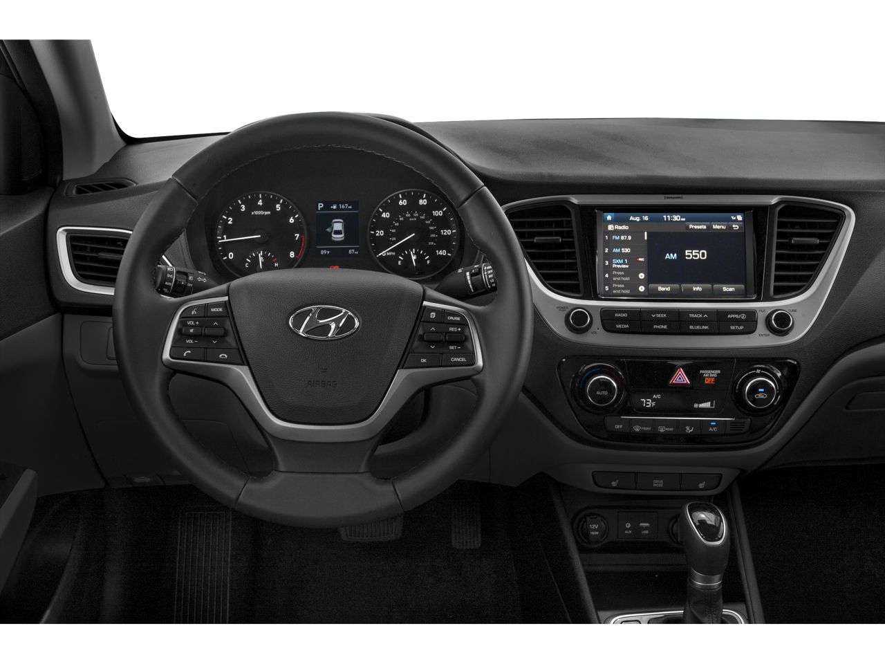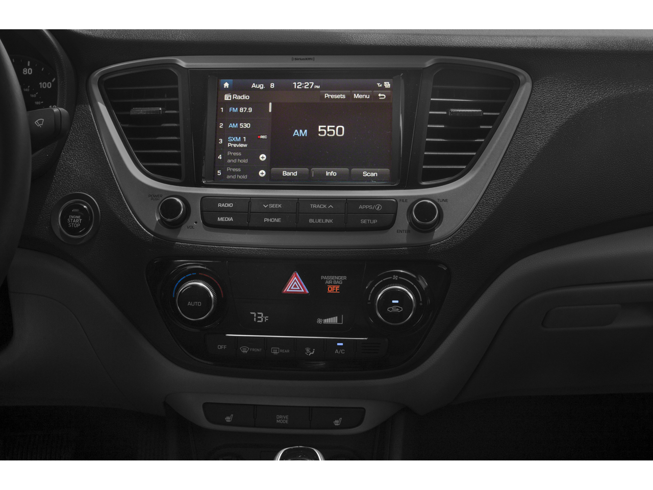 - Radio: AM/FM/SiriusXM -inc: 6 speakers, 7" touchscreen display, Android Auto, Apple CarPlay, Apple Siri Eyes-Free interface, smartphone/USB and MP3 auxiliary input jacks, dual USB charging, steering-wheel-mounted audio controls, Blue Link Connected Services 3-year included and Bluetooth® hands-free phone system w/voice recognition